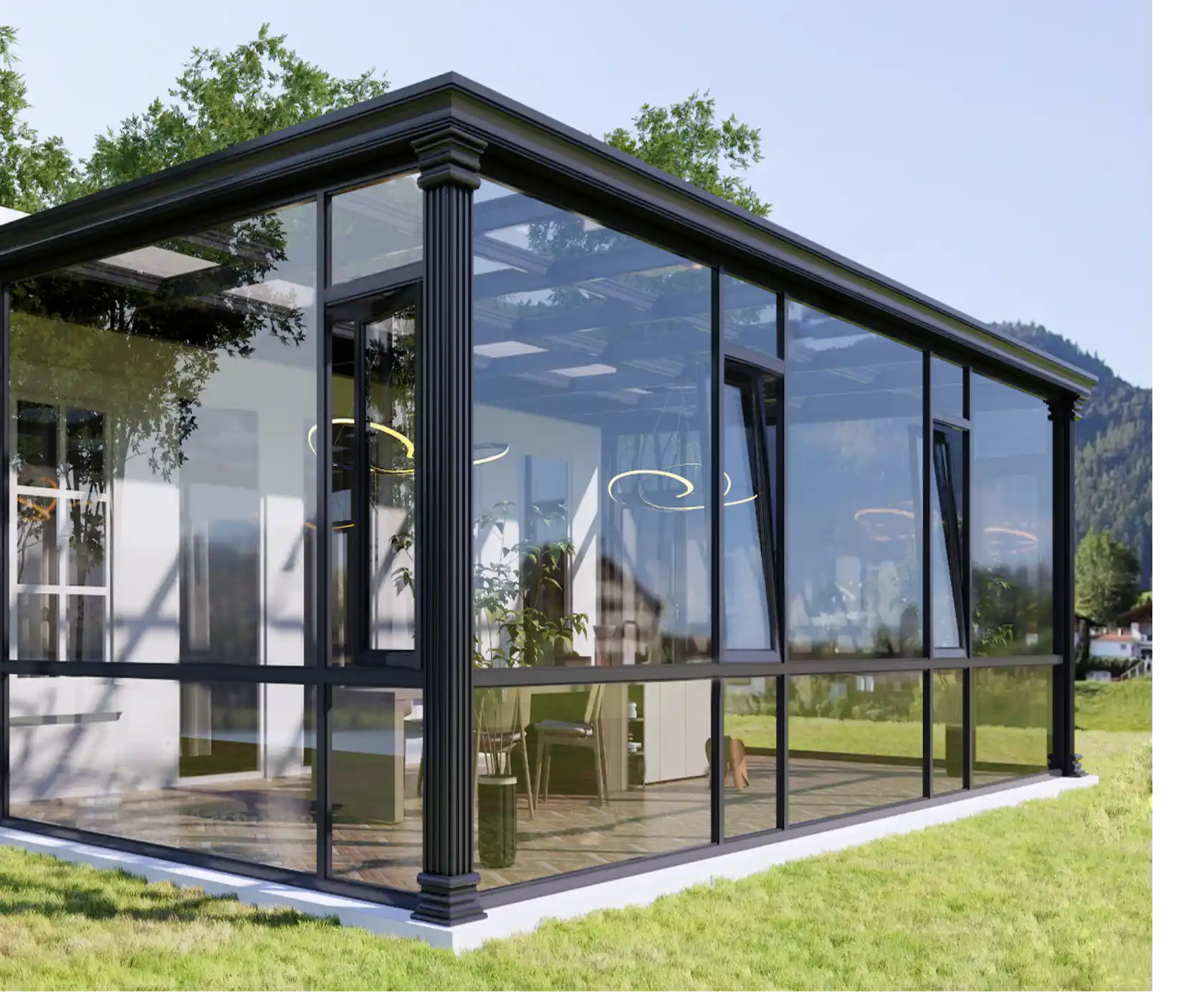 Integrated aluminum sunroom and door-window solutions deliver energy efficiency, comfort, and elegant living space tailored for luxury villas.